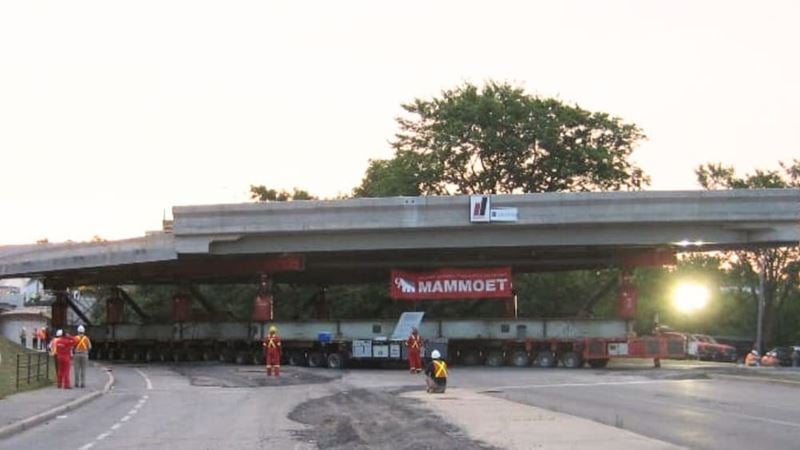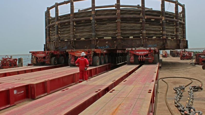 Self-Propelled Modular Transporters consist of modules with 4, 5, 6, and 8 axle lines. Load capacity differs per version, with a maximum of up to 44 tons per axle line. Each module can be fitted with its own engine and control (steering) system. The modules can be connected side-by-side and/or head-to-tail, to form large ‘platforms on wheels. SPMTs have the possibility of 360-degree steering of the wheels. This allows carrousel and sideway movements. Their deck height can hydraulically be adjusted by approximately 60 cm., enabling vertical lifting or lowering of the load. Due to their variety of combinations, SPMTs can lift and move virtually every heavy load. These trailers are mainly used for on-site transportation over limited distances.