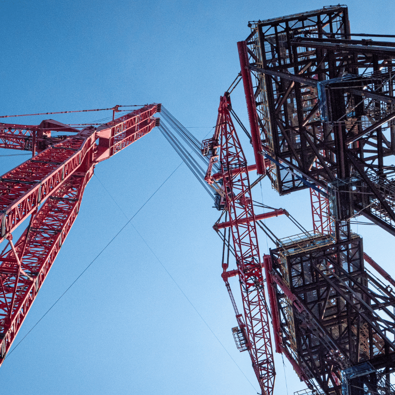 Therefore, Mammoet’s PTC210DS ring crane was selected. It has the capacity to not only lift the heaviest component (a six-drum derrick weighing over 1,200 tonnes) but, thanks to its impressive reach capacity, could be assembled further away to not disrupt other on-site work.