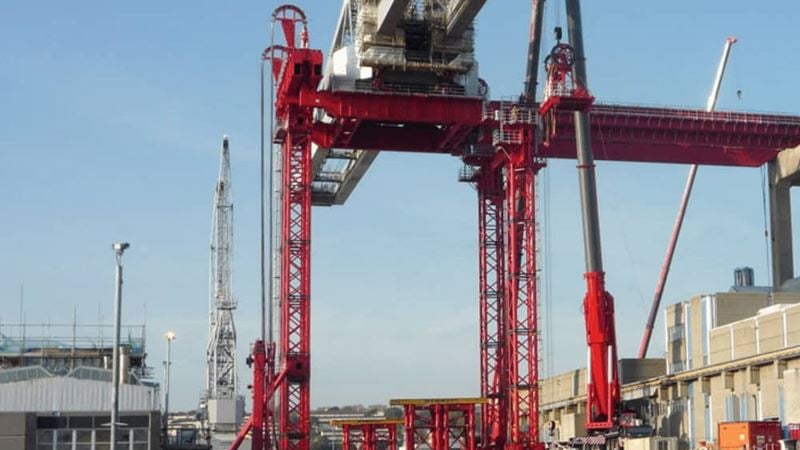 Um diese höchst spezialisierten Teile sicher zu handhaben, musste Mammoet rund 2.000 Tonnen Material zur Baustelle liefern. Dazu gehörten verschiedene Krane, Transportfahrzeuge, 400 t Rigging-Ausrüstung sowie Support- und Spezialequipment. Allein das Rigging zum Anheben des Auslegers wog 80 t.