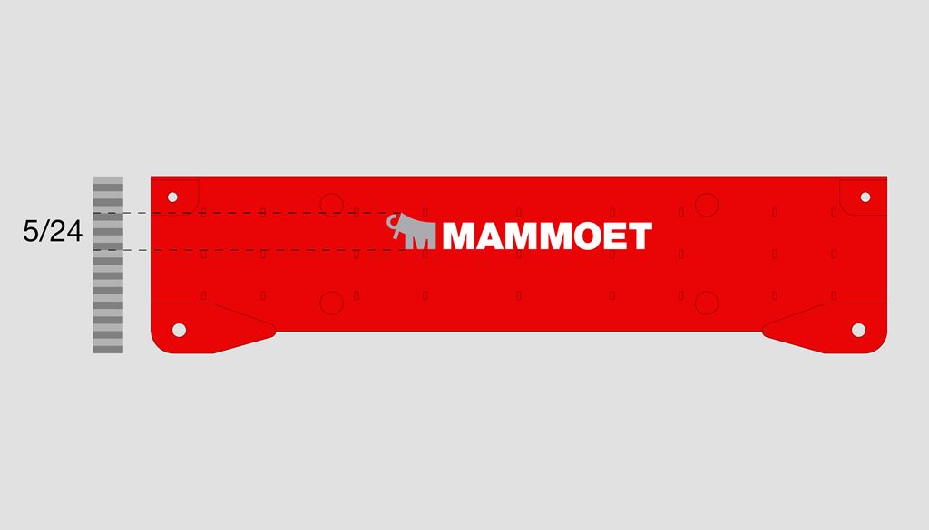 Large gantry beams are painted fully in red, with a horizontal logo positioned in the middle with a height of 5/24 of the total height of the beam. In some cases, large gantry beams can be positioned at high altitude and therefore require larger branding to be visible – in that case, please reach out to equipment.branding@mammoet.com for any questions.