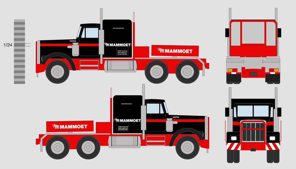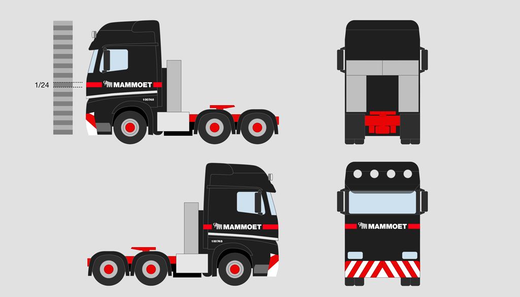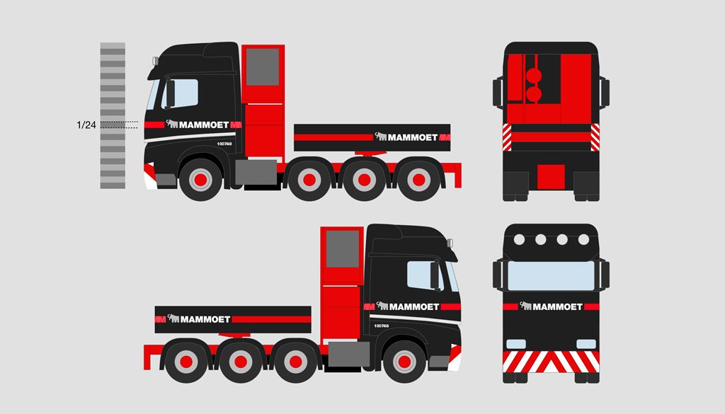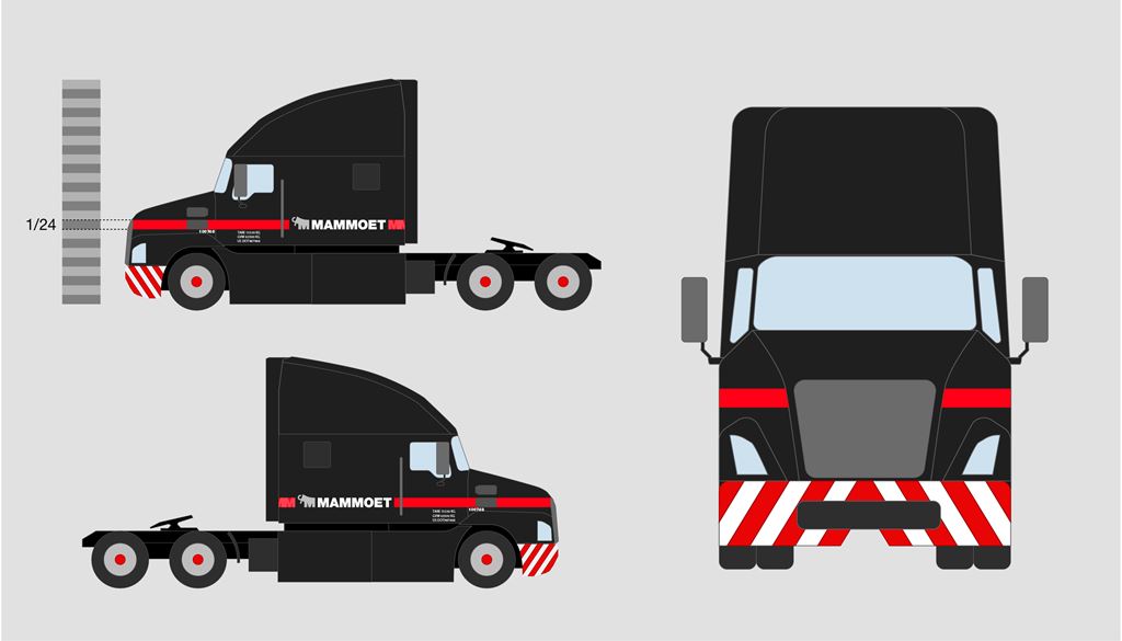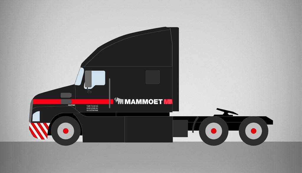 - If the Mammoet logo in the front cannot be placed below the windscreen, it is allowed to be placed on the top of the truck cabin - but not both.