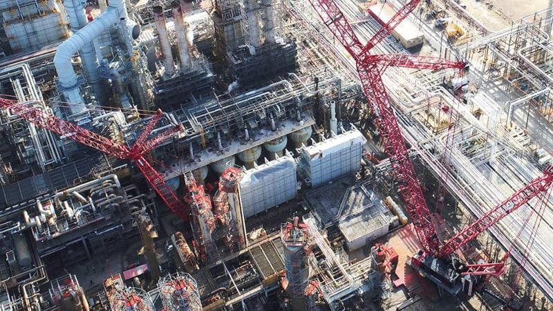The Demag CC 8800-1 has a capacity of 1,600ton. A crawler crane is mounted on an undercarriage with a pair of caterpillar tracks that provide stability and mobility. Their configuration – such as boom length, backmast and counterweight - can be adjusted to specific requirements. This provides additional lifting capacity. Crawler cranes can crawl with a load, allowing more flexibility in lifting.
