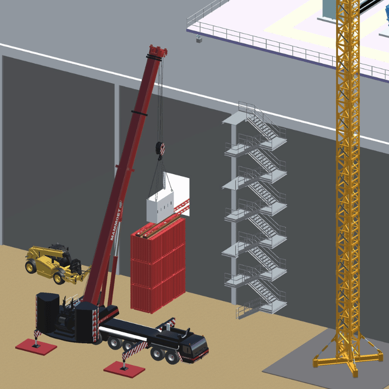 - Lifting service by tower cranes and telescopic cranes