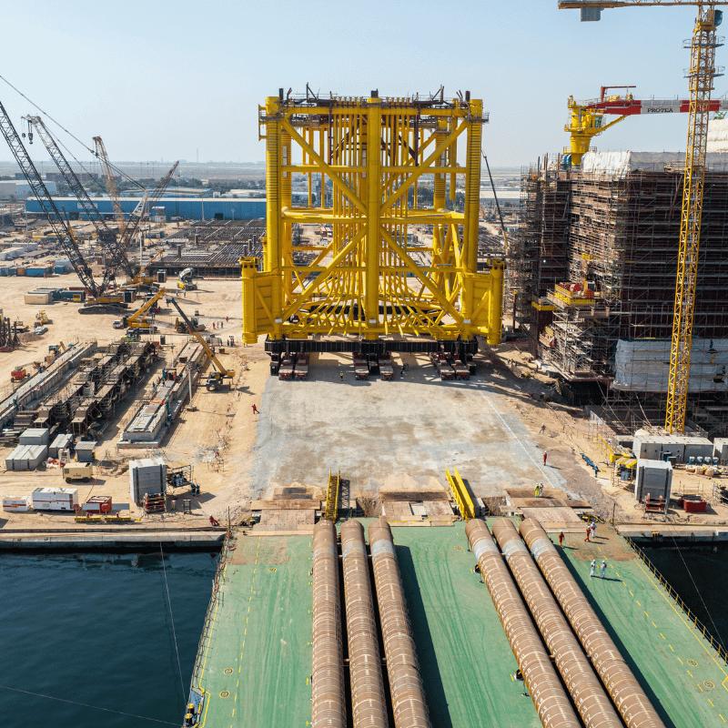 Mammoet winches supported safe mooring management during critical quay activities. The jacket and its foundation piles have now been secured for sailaway to Europe for the next phase of the project.