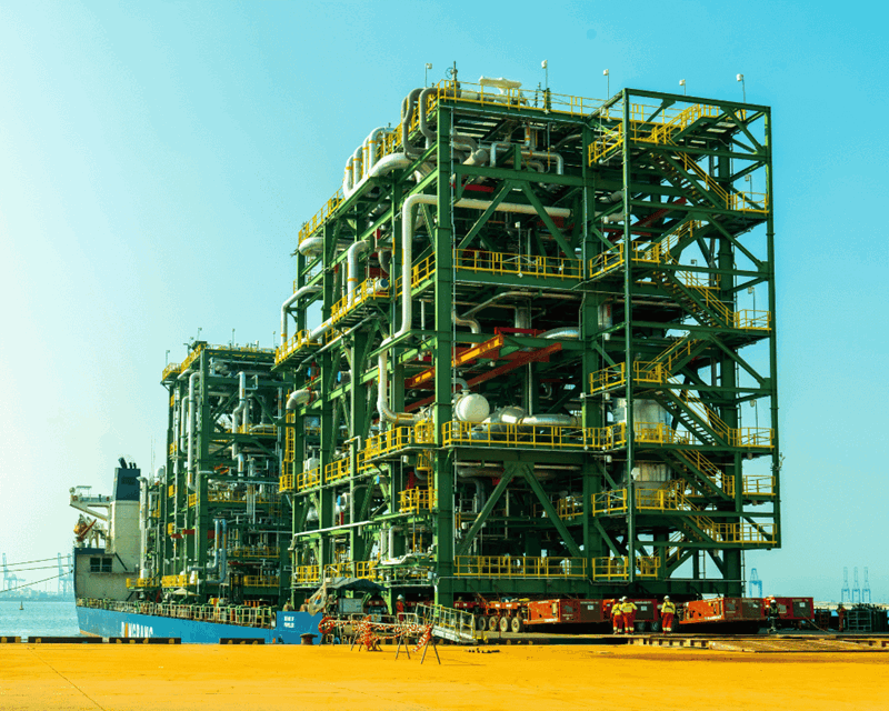 The heaviest and tallest unit – a Process Gas Cooling Module – weighed 2,464t and measured 38 meters long, 23 meters wide, and 32 meters high.