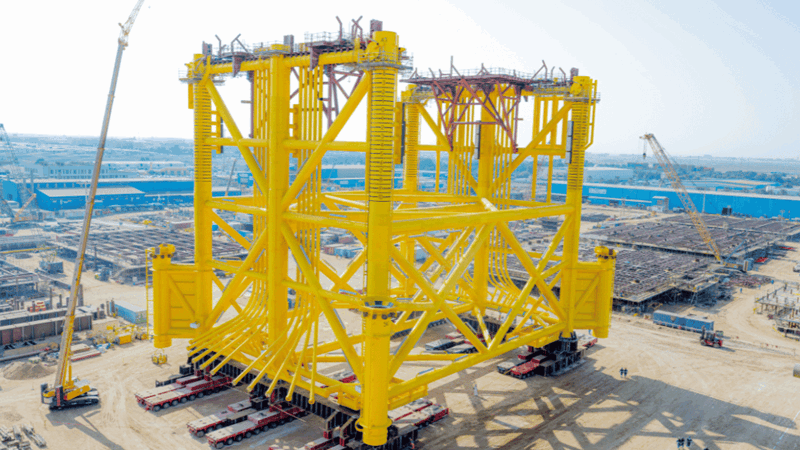 Mammoet has announced a fixed jib configuration for the SK6,000 that will allow offshore wind developers to reach deeper waters and significantly cut the cost of floating wind assembly.